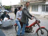 Kadir Gülümser, motosikletinin arkasına bağladığı küçük römorku adeta TIR gibi kullanıyor. Römorka pazardan aldığı malzemeleri yükleyen Gülümser, eşi ve çocuğunu da taşıdığı motosikletle adeta faciaya davetiye çıkarıyor.