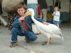 Bir yıldır balıkçıların baktığı sevimli pelikan, insanların arasında güven içinde geziniyor. Her gün taze balıkla beslenen pelikan, hayatından memnun görünüyor. Burhaniyeli çocuklar, balıkçıların her gün balıkla beslediği pelikanın başından ayrılmıyor.