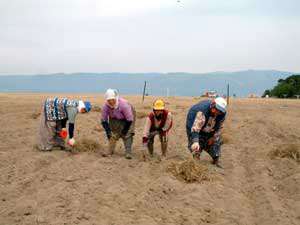 Plaj temizleme işinde günlük 12 YTL yevmiye aldıklarını belirten 1 çocuk annesi Mübeccel Alaca, "Her yıl bu aylarda belediye bize iş veriyor. Sezon öncesi çevredeki otları temizledik. Şimdi ise plajdaki ot ve çöpleri temizliyoruz. Böylelikle hem ilçemiz turizmine katkıda bulunuyoruz. Hem de aile ekonomisine katkıda sağlıyoruz" şeklinde konuştu.