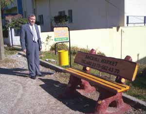 Balıkesir’in Dursunbey İlçesi’nde esnaf belediye tarafından yaptırılan banklar ve çöp kovalarının maliyetini üstlendi.