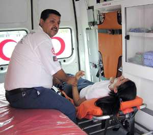 Remzi Molvalıoğlu Ticaret Meslek Lisesinin flamasını taşıyan 2. sınıf öğrencisi Hatice Aydemir, güneşin etkisiyle bayılınca, hemen ambulansa alınarak ilk tedavisi yapıldı.