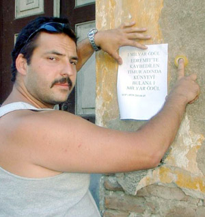 Balıkesir'in Edremit İlçesi'nde, annesinden hatıra kalan altın künyeyi kaybeden gurbetçi genç, bulana bin YTL ödül vereceğini duvarlara astığı ilanlarla duyuruyor.