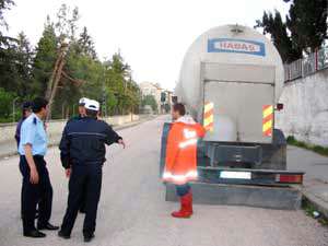 Aracın şoförünü bulamayan trafik ekipleri, yoldan geçen bir tanker sürücüsünü durdurarak yardım istedi. Tanker şoförü hemen vanayı kapatarak gaz kaçağını önledi.
