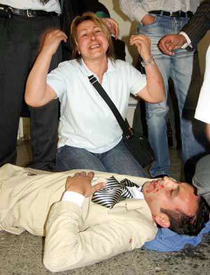 Darp edilen oğlu Sevgin Kahramanın bayıldığını gören anne Lütfiye Kahraman, "Asın bunları. Gül gibi oğlumu ne hale getirdiler. Hem suçlular, hem güçlüler. Hem oğluma iftira attılar, hem de bu hale getirdiler" diyerek, yerde yatan oğlunun başında gözyaşı döktü.