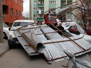 Edinilen bilgiye göre, Çırpan Mahallesi Uslu Sokakta Erdem Apartmanının çatısı büyük bir gürültüyle yola uçtu. Sokak üzerinde kimsenin olmaması muhtemel bir faciayı önlerken, çatı parçaları park halinde bulunan Meltem Ecza Deposuna ait 41 HS 244 plakalı kamyonete hasar verdi. Olay yerine gelen itfaiye ekipleri, çatının çelik parçalarını kamyonetten çıkardı. Olayla ilgili soruşturma başlatıldı.