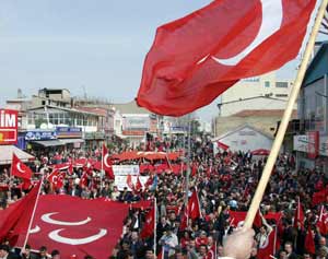 Osmangazi Metro İstasyonu önünde toplanan binlerce ülkücü, ellerindeki bayraklarla slogan attı. Saygı duruşu ve İstiklal Marşının okunmasıyla başlayan eylemde, "Akıllı olun, ateşle oynamayın" başlıklı bildiri dağıtan ülkücülere vatandaşlar da destek verdi. Bayrağa yapılan saldırıyı kınayan ülkücüler, tekbir sesleriyle yeri göğü inletti.