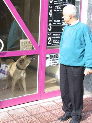 Uluyol Caddesi Şenocak İşhanı bekçisi Adem Ballı, bayramlaşmak için yakınlarını ziyarete gidince, hırsızlığa karşı iş hanının girişine ’Dikkat köpek var’ yazısı asarak, kangal köpeğini salık bir şekilde bıraktı. Yarın bitecek bayram tatili öncesinde çalışmak için iş hanına gelen avukat Tacettin Ertaç ve sigortacı Ulaş Özcan, üzerlerine saldıran köpekten dolayı bir türlü iş hanının kapısını açamadılar. Bekçinin telefonlarına bakmaması üzerine iş hanına bir kez daha girmeyi deneyen Tacettin Ertaç, köpeğin hırçın bir şekilde saldırmasından dolayı içeri giremeye cesaret edemedi.