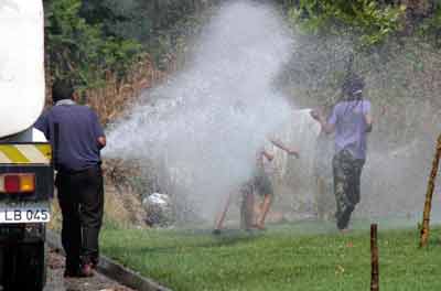 Şirinevler Mahallesi’ndeki parkı ve çimleri sulayan tankerin yanına yaklaşan mahallenin çocukları, hortumun altına girip serin suyun tadını çıkarttılar. Üzerleri ıslanan çocuklar, tanker görevlisinin kendilerini de ıslatmasını isterken, büyük bir mutluluk yaşayarak serinlemiş bir şekilde evlerine döndüler.