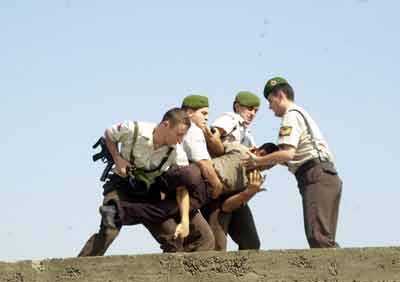 Ancak ekiplerin yıkımda kararlı olduklarını gören Çınarbay, göz yaşları içinde kendini aşağı atacağını söyledi. Görevlileri çatıdan atlamakla tehdit eden Çınarbay, askerler tarafından güçlükle yakalanarak aşağı indirildi.