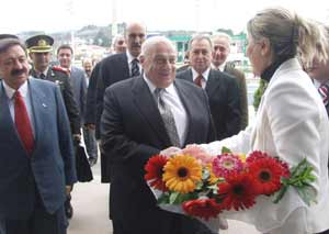 Denktaş, Osmangazi ve İnegöl İlçelerinde iki ayrı telekomünikasyon şirketinin açılışı için geldiği Bursada, Vali Oğuz Kağan Köksal, Garnizon Komutanı Tümay Bilgen ve Büyükşehir Belediye Başkan Vekili İdris Uysal tarafından Karadeniz Avize önünde karşılandı.