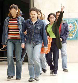 Zanlıların, "Yasadışı örgüt üyesi adına slogan atmak ve devletin suç saydığı fiili övmek" suçlarından adliyeye sevk edilirken, bazılarının zafer işareti yaptıkları gözlendi.