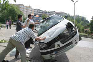 Bursada, kaldırımdan yürüyen yayaya çarpan sürücü, otomobiliyle birlikte şarampole uçtuktan sonra takla attı. Kazadan, otomobildeki 3ü bayan 4 kişi, burnu bile kanamadan kurtuldu. Takla atan otomobilin sürücüsü 19 yaşındaki İdil İpek Pınar, cep telefonuyla babasını arayarak kazayı haber verdi.