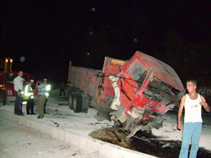 Bursa'nın Kestel İlçesi yakınlarında, freni patlayan bir kamyonun karşı yöne geçerek 3 araca çarpması sonucu meydana gelen trafik kazasında ilk belirlemelere göre 4 kişi öldü, 11 kişi yaralandı.