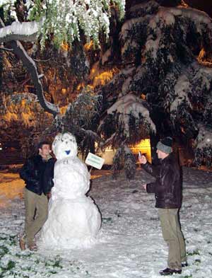 Bursa’da 2 gündür etkili olan kar yağışı kenti beyazlara bürürken, vatandaşlar kar özlemini gece boyunca eğlenerek giderdi. Atatürk anıtı önünde toplanan bir grup gencin yaptığı kardan adam, yoldan geçenlerin fotoğraf stüdyosu haline dönüştü.