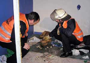 İhbar edilen adrese gelen Büyükşehir İtfaiyesi Kurtarma ekipleri binanın kepenklerini açarak içeri girdiler. Saldırganlık göstermeyen köpeklerin halsiz haline acıyan kurtarma ekipleri, hayvanların sağlık kontrolü ve bakımının yapılması için Osmangazi Belediyesi Veterinerlik ekiplerinden yardım istediler. Veteriner Şubesi ekiplerinin olay yerine gelmesiyle köpekler mahsur kaldıkları yerden başarılı bir şekilde çıkarıldı. Sağlık kontrollerinin yapılması için köpekler Osmangazi Veterinerlik Şubesi, hayvan barınağına götürüldüler. Uzun süredir bir şey yemedikleri ve su içmedikleri için halsiz oldukları gözlenen köpeklerin saldırgan bir tavrı olmaması dikkat çekti.