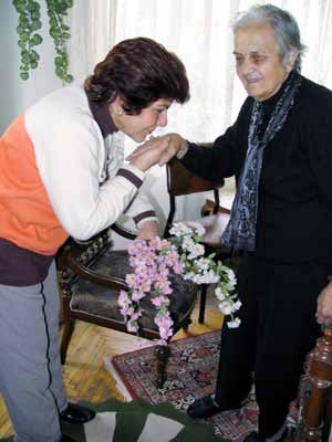 Kendisi de emekli öğretmen olan Oya Taneri, yaşı bir asra dayanan hocasını ziyaret ederek gönlünü aldı. Öğretmenine çiçek verip elini öpen Taneri, hocasıyla Namazgah İlkokulu’ndaki eski yılları yad etti.