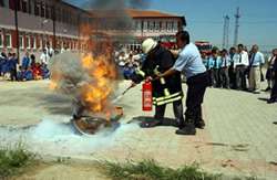 Eğitim Seferberliği kapsamında yaklaşık bir yıldır özel kurum, kuruluş, okul ve fabrikalara yangından korunmayı ve yangın anında ilk müdahalenin nasıl yapılması konusunda eğitim veren Bursa Büyükşehir Belediyesi İtfaiye Daire Başkanlığı, bu kez Organize Sanayi Bölgesindeki Rüveyde Dörtçelik İlköğretim Okulu öğrencilerine verdi.