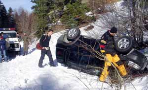 Bursa Uludağ yolunda buzlu zeminde viraja hızlı giren cip takla atarak yoldan çıktı.