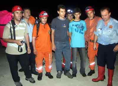 Büyükşehir Belediyesi İtfaiye Daire Başkanı Orhan Doğan, 5 saatlik çalışmanın ardından Gökdere Boğazı'ndan 4 kilometre uzaklıktaki heyelan mevkiindeki kayalıklarda gençlere ulaşıldığını açıkladı. Uzun süren çalışmaların ardından kurtarılan gençler itfaiye araçlarına bindirilerek Zafer İtfaiye Grup Amirliği'ne getirildi. Gençlere burada çay ikram edildi. Serkan Çavdar'ın Yıldız Teknik Üniversitesi Makine Mühendisliği bölümünde öğrenci olduğu, Ercan Evken'in ise üniversiteye hazırlandığı öğrenildi. Gençler, mahsur kaldıkları 7 saat sırasında şarkı söyleyerek zaman geçirdiklerini söylediler.