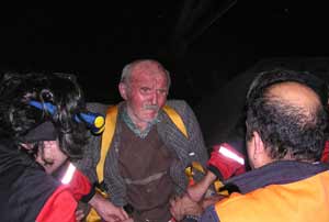Bu arada ihbar üzerine harekete geçen 8 kişilik sivil 911 Arama Kurtarma ekibi teleferik binasına geldi. Ramazan Kılıçın bulunduğu noktaya özel olarak çalıştırılan teleferikle ulaşan 911 ekibi, 50 metre yükseklikteki direklerden ve teleferik kabininden iple sarkarak yaşlı adama olay yerinde ilk müdahaleyi yaptı. Teleferik kabiniyle yaşlı adamın bulunduğu noktaya kurulan ipli hattın ardından ayağına atel takılan yaşlı adam, sedyeye bağlanarak 50 metre yükseklikteki teleferik kabinine çekildi. 3 gündür aç, susuz ve yaralı bir şekilde ormanda kaldıktan sonra, 911 timi tarafından kurtarılan yaşlı adam kabine alındığında acılar içinde inleyerek uyuya kaldı.