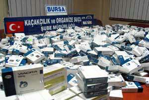 Bavul çantayla ilaç satışı yapmak isteyen Necati K. gözaltına alınırken, depo olarak kullandığı Tahtakalede koliler içerisinde saklanmış bin 580 kutu Viagra ve bin 420 kutu çeşitli ilaç ele geçirildi. Aralarında böbrek, kalp ve vitamin ilaçlarının bulunduğu 3 bin kutu ilaç, Gümrük Müdürlüğüne teslim edildi.