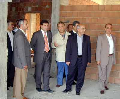 AK Parti Bursa Milletvekili Sedat Kızılcıklı ile birlikte Gemlik’e gelen SSK Genel Müdürü Servet Rüştü Karahan, 10 yıl önce temeli atılan ve yıllardır yüz üstü duran İmam Hatip Lisesi inşaatında incelemelerde bulundu.