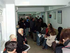 Sabahın erken saatlerinde hastaneye gelen hastalar, fişlerini aldıktan sonra dar koridorlarda saatlerce muayene sırası bekliyor.