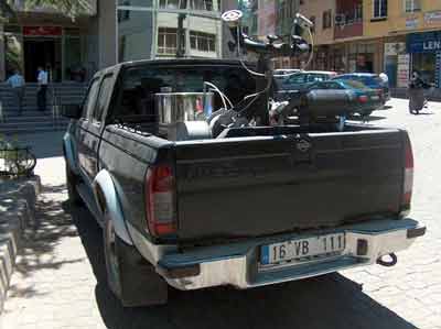 Bursa'nın Orhangazi İlçesi'nde geçtiğimiz dönem OBEFAŞ Genel Müdürü Halil İbrahim Çelik'in kullandığı makam aracı, şimdi sineklere karşı ilaçlı mücadele kullanılıyor. 16 VB 111 plakalı Nissan marka çift kabin araç, sıcaklarla birlikte artan sivri sineklere karşı mücadelede kullanılıyor. Daha önce traktörlerle atılan sinek ilaçlarının şimdi genel müdürün lüks makam otosuyla atıldığını gören Orhangazililer, şaşkınlıklarını gizleyemiyor.