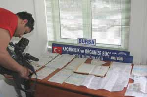 Çok sayıda kişiyi mağdur ettiği öne sürülen Gündüz Ş.nin ev ve işyerinde arama yapıldı. Aramada çok sayıda kişiye ait 500 milyar lira tutarında çek ve senetle başka kişilere ait tapular ele geçirildi. Gündüz Ş, "tefecilik ve 213 Sayılı Kanuna muhalefet" iddiasıyla adliyeye sevk edildi.