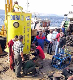 İlkt etapta tarihi bilgiler eşliğinde İngiliz, Fransız, Avustralya, Alman ve Türk arşivlerini kullanarak batıkların olabileceği mevkileri belirlediklerini, ardından side scan (yan taramalı) ve dikey sonar ile arama yaptıklarını anlatan Karakaş, "Daha sonra dalış yaparak dijital kameralarla batıkları görüntüledik. Sualtı ve su üstünden alınan görüntüleri gemi planları ve arşiv fotoğrafları ile karşılaştırarak, bulunan batıkların kimliklerini tespit etkik. 15-24 Eylül 2004 tarihlerinde Çanakkale Boğazı ve çevresinde araştırma yapıp, İngiliz E15 ve E7 denizaltıları ile Fransız Joule denizatlısının yerlerini kesin olarak tespit ettik. Bunun dışında ayrıca Fransız Saphir ve Mariotte denizatlılarına ait kalıntılarını da belgeledik. 1-3 Ekim 2004 tarihlerinde Marmara’da Karabiga - Şarköy arasında yürütülen araştırmamıza Detek Denizcilik şirketi sahibi Enes Edis "Detek Salvor" isimli araştırma gemisiyle gemisiyle katıldı. 25 Nisan 1915’te Çanakkale Boğazı’nı ilk defa geçen ve 30 Nisan 1915 tarihinde Sultanhisar tarafından bu bölgede batırılan ve 1998 yılında Selçuk Kolay tarafından enkazı 72 metrede bulunan AE-2 denizaltısına benimle beraber Enes Edis ve Yunus Pense trimix gaz dalışı yaptık. Yine aynı bölgede 1 Mayıs 1915 tarihinde E14 tarafından batırılan Nur-ül Bahir gambotu ve 1917 yılında batan İntizam adlı Şirket-i Hayriye vapuruna dalınarak ve sualtı film çekimlerini yaptık" diye bilgi verdi.
