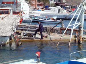 Küçükkuyuya gelerek limandaki batık tekneleri zapta geçiren Denizcilik Müsteşarlığı PSC (Liman Devleti Kontrolü) ekipleri, liman içinde bulunan "B. Yusuf" adlı batık tekne hakkında not aldı.
