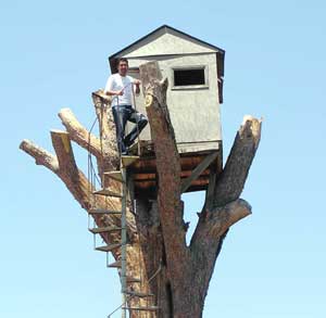 Çanakkale merkeze bağlı Güzelyalı Köyü'nde yazlığı bulunan avukatın 5 yıl önce 150 yıllık çam ağacının üstüne yaptığı 4 metrekarelik ahşap ev, yerli ve yabancı turistlerin büyük ilgisini çekiyor.