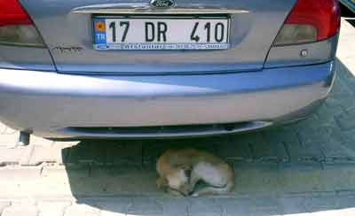 Sıcak havadan etkilenen sokak hayvanları, güneşten korunmak için araçların altlarına girerken, kimi hayvanlar da soluğu denizde alıyor.
