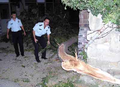 Bu uyarının ardından ise akşam saatlerinde hızını zaman zaman 60 kilometreye kadar çıkaran fırtına İngiliz Mezarlığı’nda bulunan bir ağacın yol üzerine devrilmesine sebep oldu. Ağacın devrilmesi sırasında yoldan geçen bir aracın olmaması olası bir faciayı önlerden, Belediye ekipleri kapanan yolu kısa sürede trafiğe açtılar.