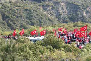 ...Yürüyüş, 1000 Gönder Bayrağının süslediği güzergahtan Anzak Kolordusunun durdurulduğu Conkbayırına kadar devam etti. Yürüyüş yolunda sıralanmış izciler, ellerindeki davullarla öğrencilere marşlar söylettiler, Mehter ve Bando Takımımız ise aynı anda Conkbayırında.