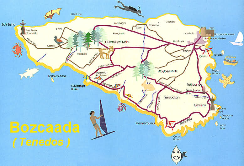 Tenedos (Bozcaada) bugün Çanakkale’nin bir ilçesi olup, kuzeyinde Semadirek, kuzey-batısında Li,mni, güneyinde Midilli, kuzey-doğusunda Gökçeada bulunmaktadır. Çevresindeki küçük adacık ve kayalıklarla 40 km2’lik bir yüzölçümüne sahiptir.