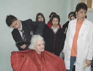 İMKB Serhat Meslek Lisesi Cilt Bakımı ve Kuaförlük Dalı öğrencileri, ziyaret ettikleri Edirne Huzurevi sakinlerine saç bakımı yaptı.