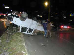 Bu arada, yolun ortasında ters dönen otomobili polis ve vatandaşlar düzelterek yol kenarına çektiler. Refüjlerin üzerinde ters dönen kamyonetin ise çekici yardımıyla döndürülmesine karar verildi.