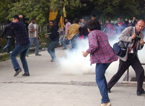 'dağılın' uyarılarına öğrencilerin taşla karşılık vermesi üzerine çatışma başladı. Mimarlık Fakültesi içine giren sol görüşlü öğrencilerden bir grup, okul sıralarından barikatlar kurarak ders gören öğrencileri rehin aldı. Bazı öğrenciler, tuvalet pisuarlarını, lavaboları ve sıraları tahrip etti. Polisin sis bombalarıyla gruba müdahale etmesine rağmen, yeterli olamayınca jandarmadan takviye ekip istendi. Jandarma takviyesi ile okulda mahsur kalanlar kurtarıldı.