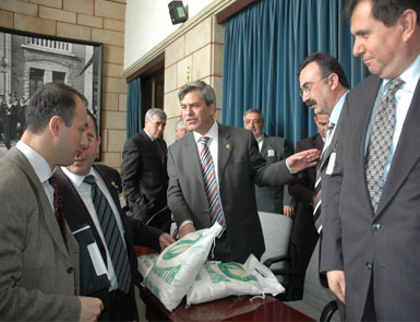 Basın toplantısının sonunda Edirne’nin İpsala Bölgesi’nden getirilen on ton pirincin tanıtım amaçlı dağıtımı yapıldı. Bölgeye has özellikler taşıdığı anlatılan pirinçler; milletvekilleri ve basın mensuplarıyla bakanlık, meclis ve güvenlik personeline armağan edildi.