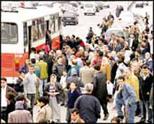 İstanbul’da, 16 değişik ulaşım türüyle turist ve misafir sayısı dahil 9 milyon 300 bin dolayında günlük şehiriçi yolculuk yapılıyor. Geçtiğimiz günlerde temeli atılan Marmaray projesiyle önemli bir adım atılsa da, değişik ulaşım türleri arasında sağlıklı ulaşım altyapısını oluşturacak bir ulaşım planı doğrultusunda uyum ve entegrasyon bugüne kadar sağlanamadı. Araştırma sonuçlarına göre, İstanbul trafiği sabah saat 07.00 ile 08.00 arasında yoğunlaşıyor. Araçlı yolculukların yüzde 58.1’i evden işe, yüzde 16.5’i de evden okula gidiş için gerçekleştiriliyor. Kullanılan araçların ise yaklaşık yüzde 60’ını toplu taşıma araçları, yüzde 30’unu özel araçlar, yüzde 11’ini de servis araçları oluşturuyor. Ulaşımda raylı taşımacılığın payı yüzde 7 seviyesinde kalırken, üç tarafı denizlerle çevrili olmasına rağmen deniz toplu taşımacılığı payı sadece yüzde 3.