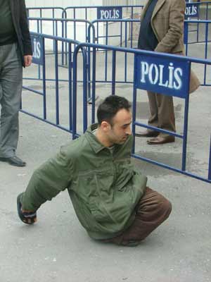 İstanbul’da düzenlenen narkotik operasyonunda 4 kişi, 250 gram esrar, 600 adet "Extacy" marka hap ile yakalandı. İstanbul Ağır Ceza Mahkemesi’ne sevk edilen zanlılardan Mahmut Baydoğan, ayakları olmadığı için sürünerek içeri girebildi.