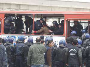 Galatasaray Lisesi önünden, Taksim Meydanına yürümek isteyen 20 kişi gözaltına alındı. Şahıslar, bindirildikleri otobüsün camlarını kırdı.