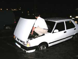 Bu arada, yollar sular altında kalınca çok sayıda araç da arızalandı. Paçalarını sıvazlayan sürücüler, yollarda kalan araçlarını itekleyerek adeta göle dönen yoldan çıkarmaya çalıştı.