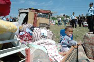 Avcılarda, Romanların boş arazilere kurduğu çadırlar, belediye ve zabıta ekipleri tarafından yıkıldı. Çadırlardaki eşyalarını boşaltmanın derdine düşen vatandaşların bir kenara bıraktığı küçük çocukları, olan biteni şaşkın bakışlarla izledi.