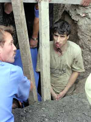 Vatandaşların ihbarı üzerine olay yerine gelen itfaiye ekipleri, beline kadar gömülü halde bulunan işçiyi kurtarmak için çalışma başlattı. Yüzü kanlar içinde kalan Yunus Şahin, uzun süre kurtarılmayı bekledi.