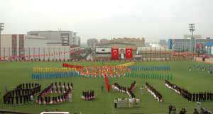 Daha sonra çeşitli okullardan törene katılan öğrenciler resmi geçit töreninden sonra sundukları birbirinden güzel gösterilerle Bahçelievler stadyumunu dolduran vatandaşlara coşkulu anlar yaşattılar.