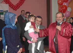 Öte yandan evlenen çiftlere evlilik cüzdanları ile birlikte Prof.Dr. Ergün Yenerin 41 yıllık eşine ithafen yazdığı Sen İstersen isimli şiir kitabı da imzalanarak çiftlere hediye edildi. Çocukları ile birlikte nikah masasına oturan çiftler, Türk Sanat Müziğinin ünlü sesi Hüner Coşkuner ve Belediye Başkanı Osman Develioğlu ile birlikte altı katlı düğün pastasını kestikten sonra ünlü sanatçının seslendirdiği şarkılarla doyasıya eğlendiler.