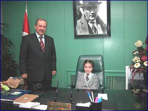 Bahçelievler Belediye Başkanı Osman DEVELİOĞLU’nu makamında ziyaret eden Ali Haydar GÜNVER İlköğretim Okulu 4. sınıf öğrencisi Eda ESMER Belediye Başkanlığı koltuğuna oturarak sembolik olarak bir süre Belediye Başkanlığı yaptı.