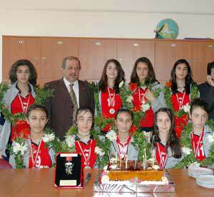 Öte yandan Belediye Başkanı Osman Develioğlu ve İlçe Milli Eğitim Müdürü Yakup Hayırlıoğlunun, katıldığı törende şampiyonluk pastası öğrencilerle birlikte kesilerek yendi